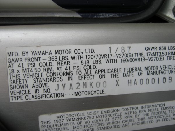 87 FZR 750 RT