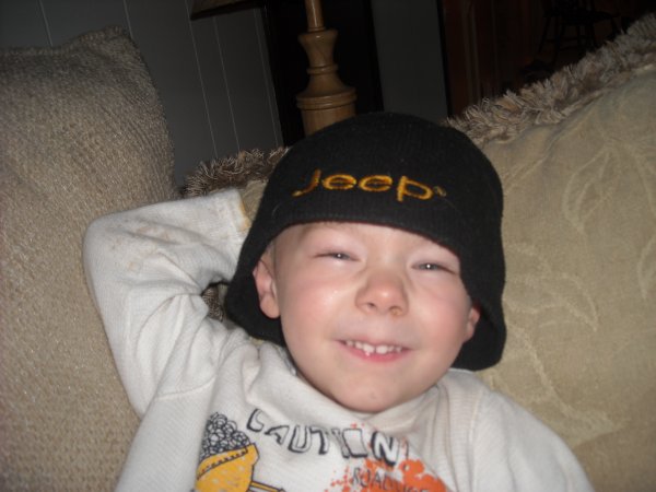 Kasey wearing my fiance's hat