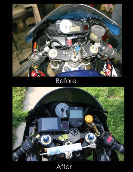 I only keep the stock cluster for the clock ( I shit you not!), and the idiot lights come in handy too. Need the monitor with no mirrors, vapor gauge combines everything else. The gear indicator is mostly just a timing retarder.